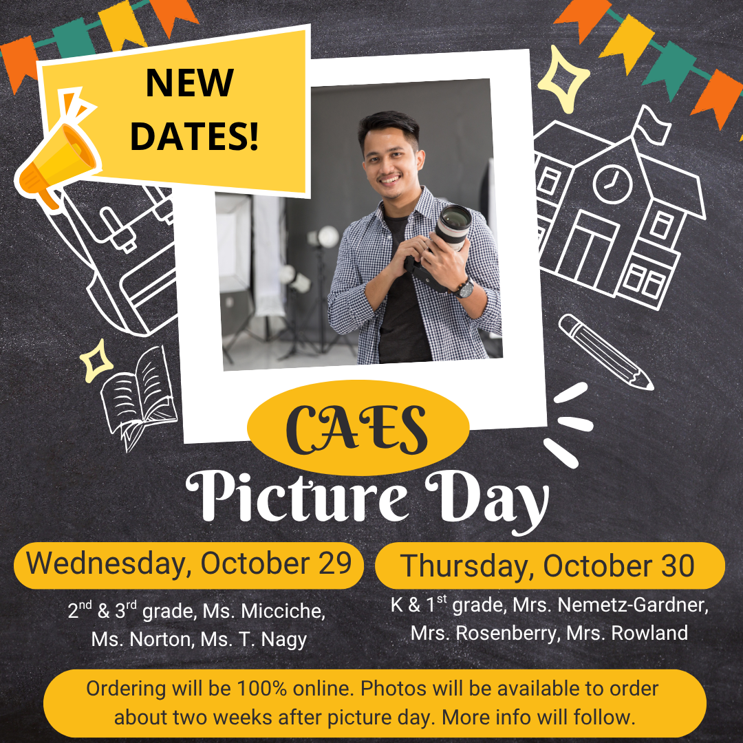 10/30 School picture day 2 (Mrs. Nemetz-Gardner, Mrs. Rowland, Pre-K, grades K & 1)
